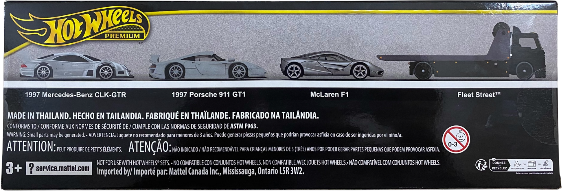 Hot Wheels Premium Collectors Set - 90s Le Mans “Holy Trinity” 1997 Porsche 911 GT1 / McLaren F1 / 1997 Mercedes-Benz CLK-GTR / Fleet Street
